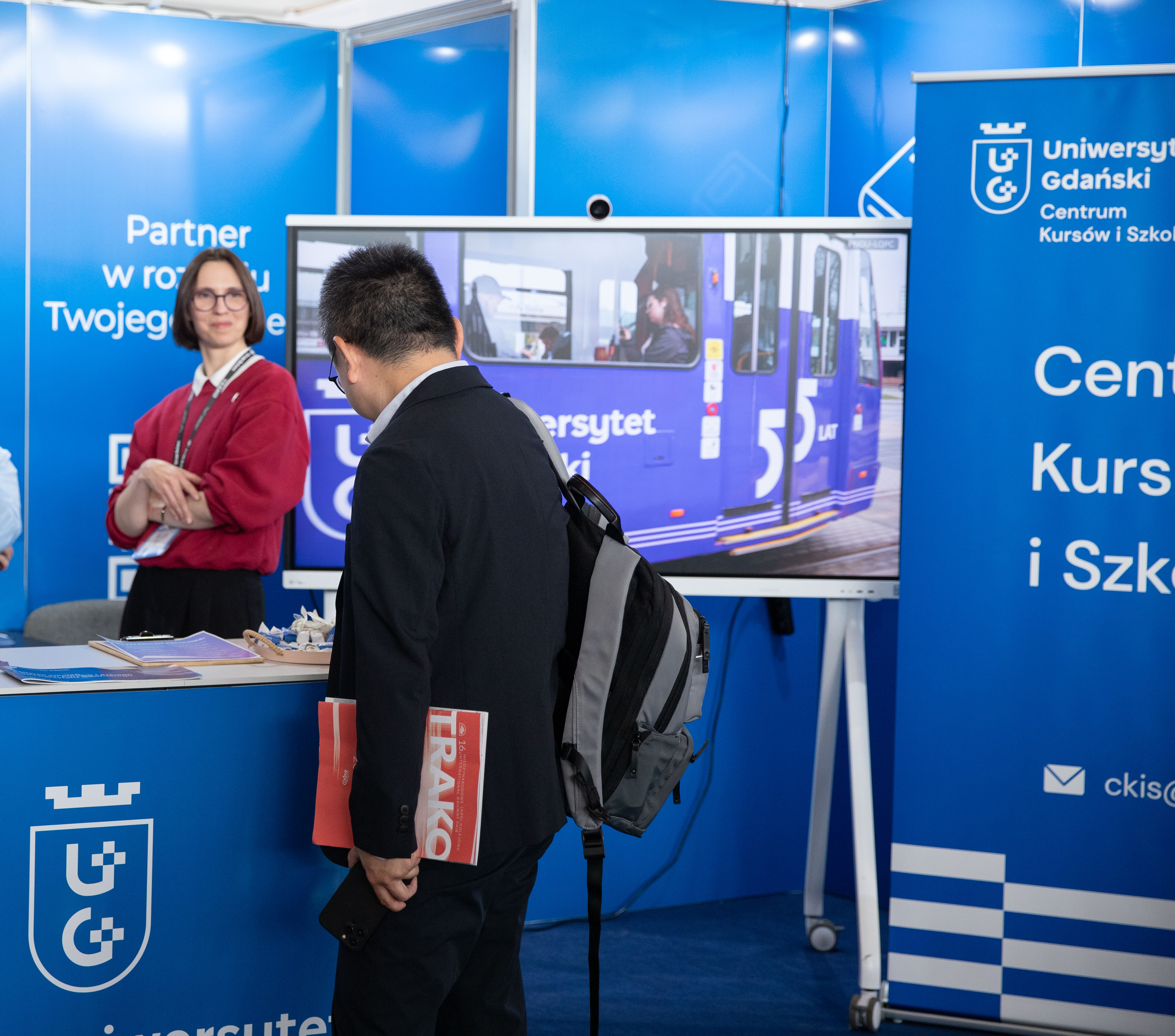 16. Międzynarodowe Targi Kolejowe TRAKO zgromadziły w gdańskim Amber EXPO ponad 600 wystawców z 30 krajów, stając się jednym z największych wydarzeń branży kolejowej w Europie. Podczas imprezy swoją ofertę dla biznesu, zrównoważonego rozwoju oraz edukacji dla przyszłości zaprezentował również Uniwersytet Gdański. Ostatni dzień targów, 26 września br., odbył się pod hasłem „Dzień Edukacji i Kariery” i był w szczególny sposób skierowany do uczniów - potencjalnych przyszłych studentów. Wśród prowadzonych na UG kierunków kształcenia, które mogą znaleźć zastosowanie również w sektorze transportu kolejowego, można wymienić m.in. logistykę, cyberbezpieczeństwo, zarządzanie czy gospodarkę przestrzenną.
