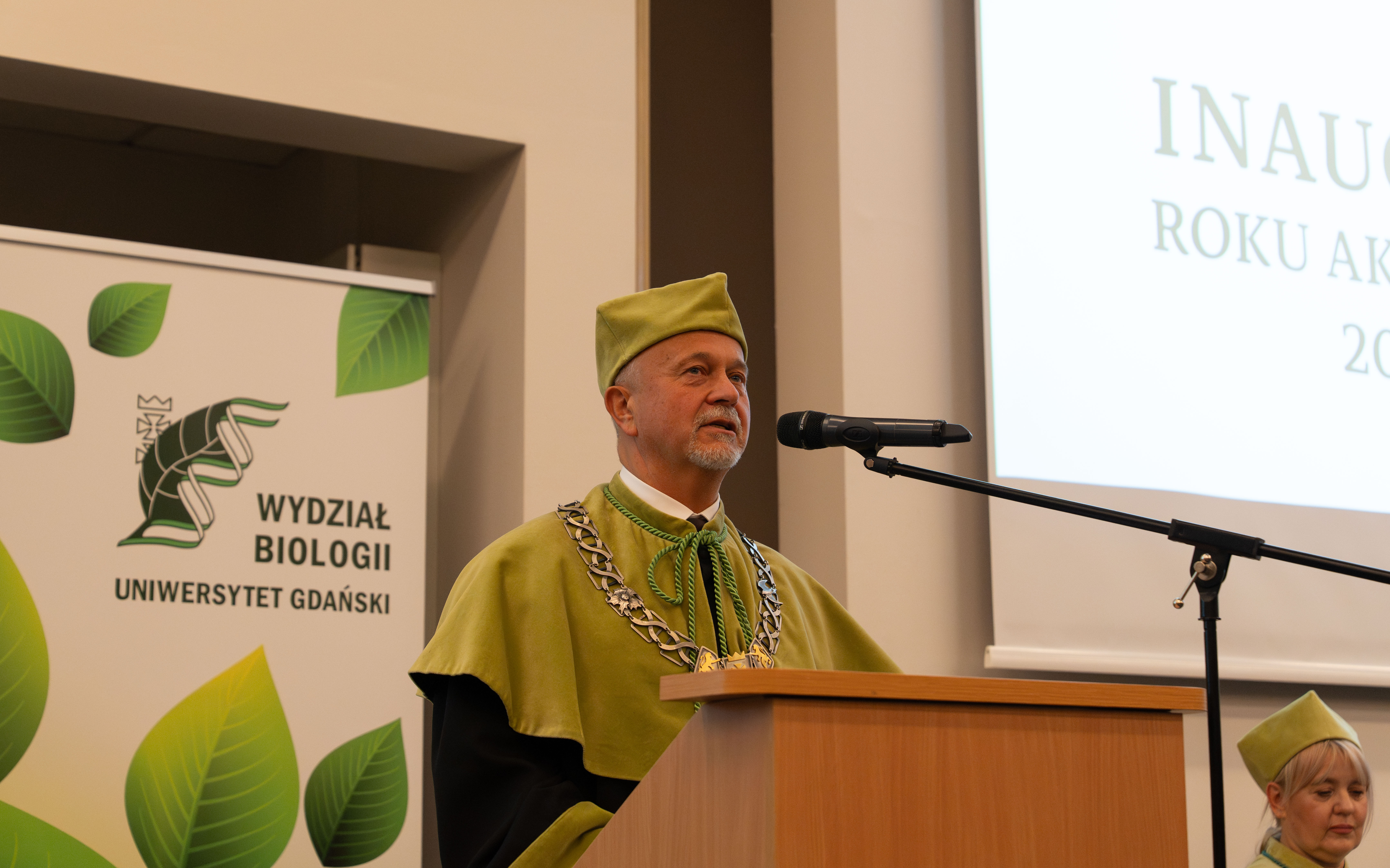 Wybitny biolog ewolucyjny, zajmujący się naukowo m.in. immunologią w kontekście koewolucji pasożyta i żywiciela, prof. dr hab. Jacek Radwan z Uniwersytetu im. Adama Mickiewicza w Poznaniu objął na rok akademicki 2025/2026 Katedrę im. Prof. Wacława Szybalskiego. Uroczyste przekazanie katedry imiennej odbyło się podczas inauguracji roku akademickiego na Wydziale Biologii UG.
