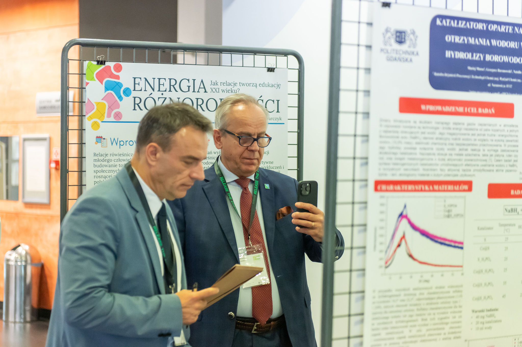 Równolegle odbywała się sesja posterowa. Swoje prace zaprezentowali m.in.: Dominika Browarczyk („Energia różnorodności. Jak relacje tworzą edukację XXI wieku?"), Anastasia Kizian (,,Zmiana zaczyna się od Ciebie”), Zofia Kaczmarczyk („Wpływ morskich farm wiatrowych na ekosystemy Bałtyku w kontekście transformacji energetycznej Pomorza”), Grzegorz Baranowski i Maciej Moroz (,,Borowodorek sodu jako chemiczny magazyn wodoru katalizatory oparte na biomasie do otrzymywania wodoru w reakcji hydrolizy borowodorku sodu), a także Dawid Falkowski (,,Safe-by-design developement of solid oxide electrolyzer cell anodes through a data-driven approach combining quantum simulations with machine learning”).