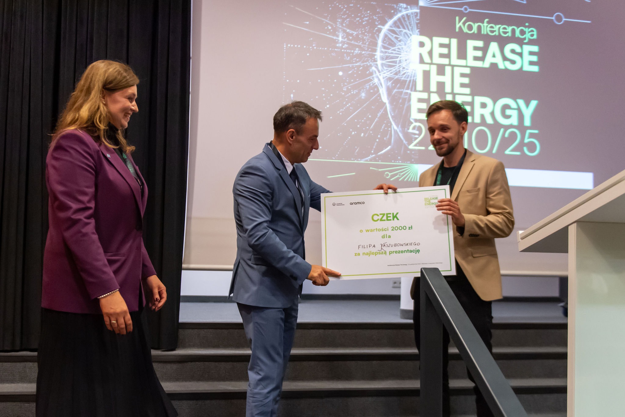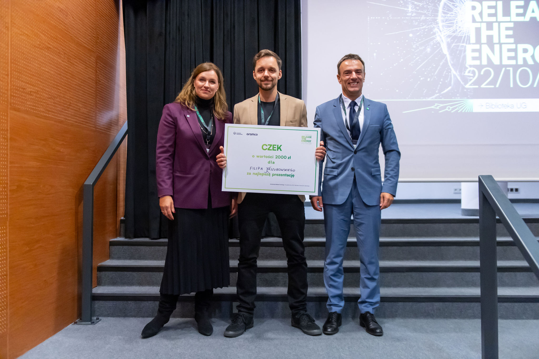 Ostatnim punktem programu było ogłoszenie werdyktu jury i wręczenie nagród ufundowanych przez partnera konferencji, firmę Aramco Europe. Nagrodę za najlepsze wystąpienie w wysokości 2 tys. zł otrzymał Filip Kaszubowski, autor prezentacji zatytułowanej „OZE bije rekordy, ale rachunki wciąż rosną. Jak obniżyć koszty transformacji energetycznej”.