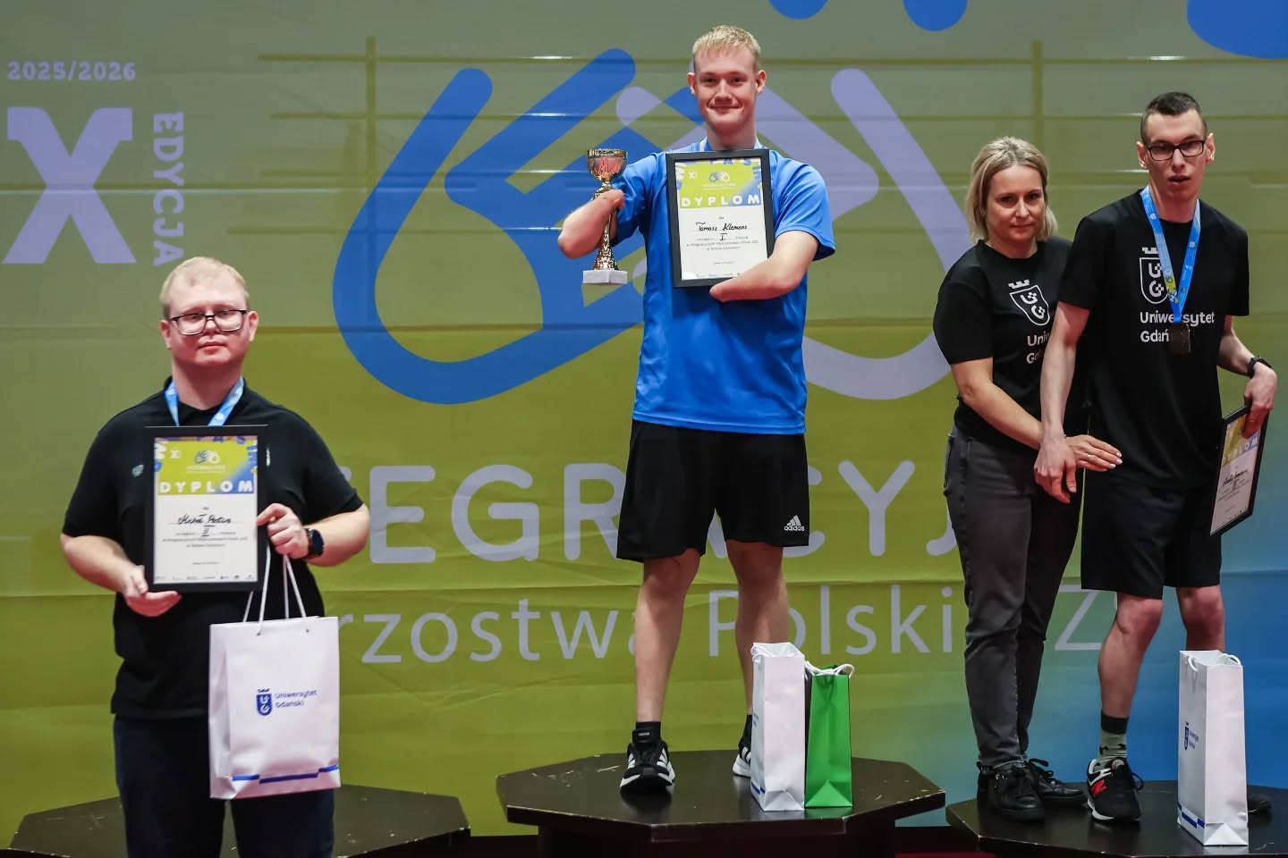 Miejsce tuż za podium w klasyfikacji drużynowej wywalczyli gospodarze (zajmując tym samym II miejsce wśród uniwersytetów!). Wielkie brawa dla sportowców i trenerki Małgorzaty Aftańskiej. Na wyróżnienie zasługuje z pewnością Mikołaj Ziemkiewicz, którego walka o brązowy medal w klasie startowej B6 wprawiła wszystkich w prawdziwą euforię. - Obserwujemy Mikołaja od kilku lat i mocno wspieramy go nie tylko w procesie rehabilitacji, ale także w sportowej rywalizacji. To piękny przykład niezłomności, który jest godny naśladowania - zauważył Dyrektor CWFiS UG.