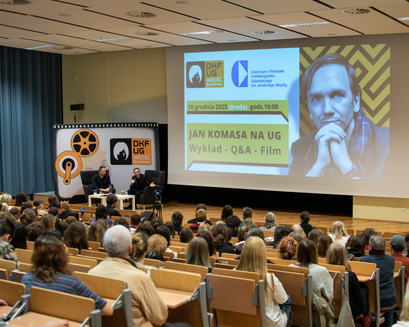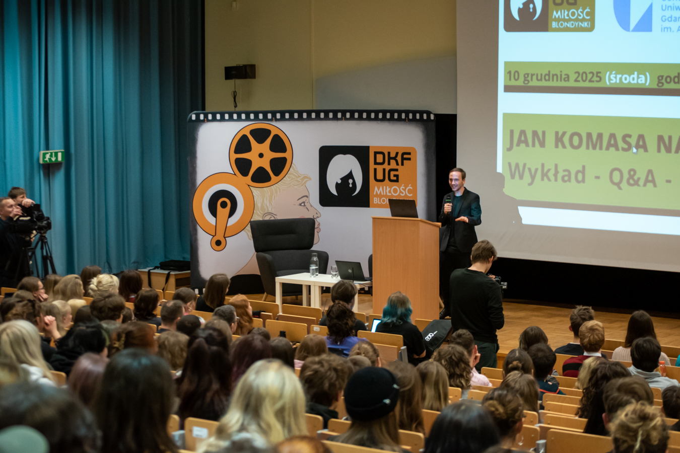 W ramach projektu „50 na 50”, związanego z jubileuszową 50. edycją Festiwalu Polskich Filmów Fabularnych w Gdyni, którego odsłonę na Uniwersytecie Gdańskim organizuje DKF „Miłość Blondynki” oraz Centrum Filmowe UG im Andrzeja Wajdy, naszą uczelnię odwiedził wybitny polski reżyser Jan Komasa. Podczas spotkania ze społecznością akademicką opowiadał m.in. o roli kultury jako narodowej soft power, o konstrukcji bohatera i antybohatera czy o swoich doświadczeniach związanych z nominacją do Oscara. Po wykładzie i sesji Q&A poprowadzonej przez dr. Piotra Kurpiewskiego goście mogli obejrzeć film „Boże Ciało”.